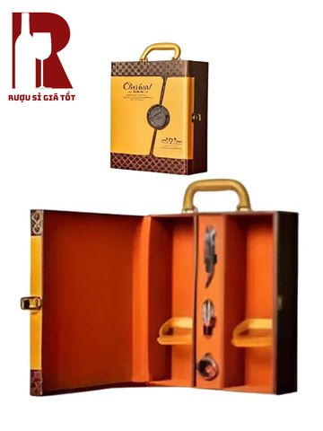 Đặt Mua Hộp Da Đựng Rượu 2 Chai 2 Phụ Kiện Sẻ Dọc To Màu Vàng Tại Rượu Sỉ Giá Tốt