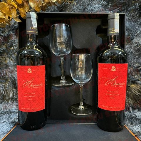 Trong dịp Tết hay những sự kiện quan trọng, một hộp quà rượu vang cao cấp luôn thể hiện sự tinh tế và trang trọng. Hộp quà rượu vang Alessandro Negroamaro mang đến sự kết hợp đẳng cấp giữa rượu vang Ý và phụ kiện kèm ly thủy tinh tinh xảo, vừa tiện dụng vừa sang trọng. Đây là món quà Tết lý tưởng để trao gửi sự kính trọng và lời chúc thịnh vượng đến đối tác, khách hàng và người thân.