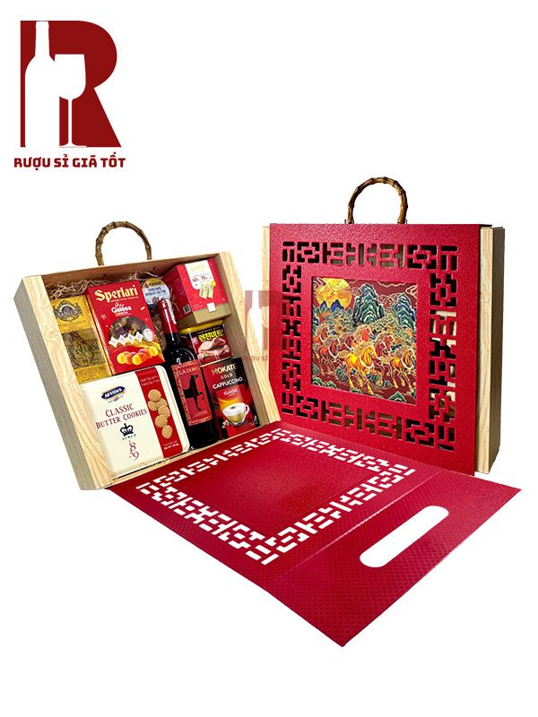 Hộp quà khoác lên mình gam đỏ chủ đạo, mang biểu tượng may mắn và tài lộc, phù hợp cho các dịp lễ, Tết, sự kiện tri ân hoặc doanh nghiệp gửi tặng đối tác. Từng chi tiết bao bì được thiết kế hài hòa, tạo cảm giác trang trọng, đẹp mắt và chỉn chu khi trao tặng.