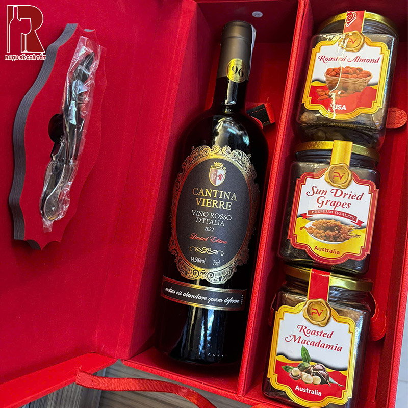 Đặc biệt, hộp quà đi kèm thiết kế sang trọng, rất hợp để tặng sếp, đối tác hay người thân trong dịp lễ tết, sinh nhật. Bên trong hộp đựng rượu vang còn được tặng kèm các hũ hạt cao cấp hoặc phụ kiện rượu vang.