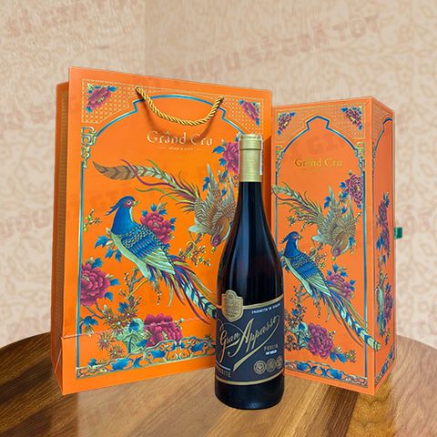 Trong các dịp quan trọng, một hộp quà rượu vang Ý luôn mang lại sự sang trọng và tinh tế. Hộp Quà Rượu Vang Gran Appasso Puglia không chỉ gây ấn tượng với hương vị rượu đậm đà mà còn nổi bật bởi thiết kế hộp giấy cao cấp, tông đỏ hoặc cam, trang trí hoa văn tinh xảo cùng hình con công xanh độc đáo. Đây là món quà vừa đẹp mắt vừa đậm giá trị, thích hợp trao tặng đối tác, khách hàng hay người thân trong các dịp lễ Tết.