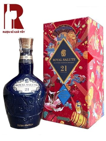 Hộp rượu màu đỏ mang họa tiết rồng bay, tượng trưng cho sức mạnh, tài lộc và sự thịnh vượng trong phong thủy Á Đông. Nhờ sắc đỏ may mắn cùng thiết kế sang trọng, phiên bản này đặc biệt phù hợp làm quà biếu Tết. So với những chai cùng phân khúc, Royal Salute 21 Hộp Đỏ nổi bật bởi sự kết hợp hoàn hảo giữa chất rượu thượng hạng và giá trị phong thủy.